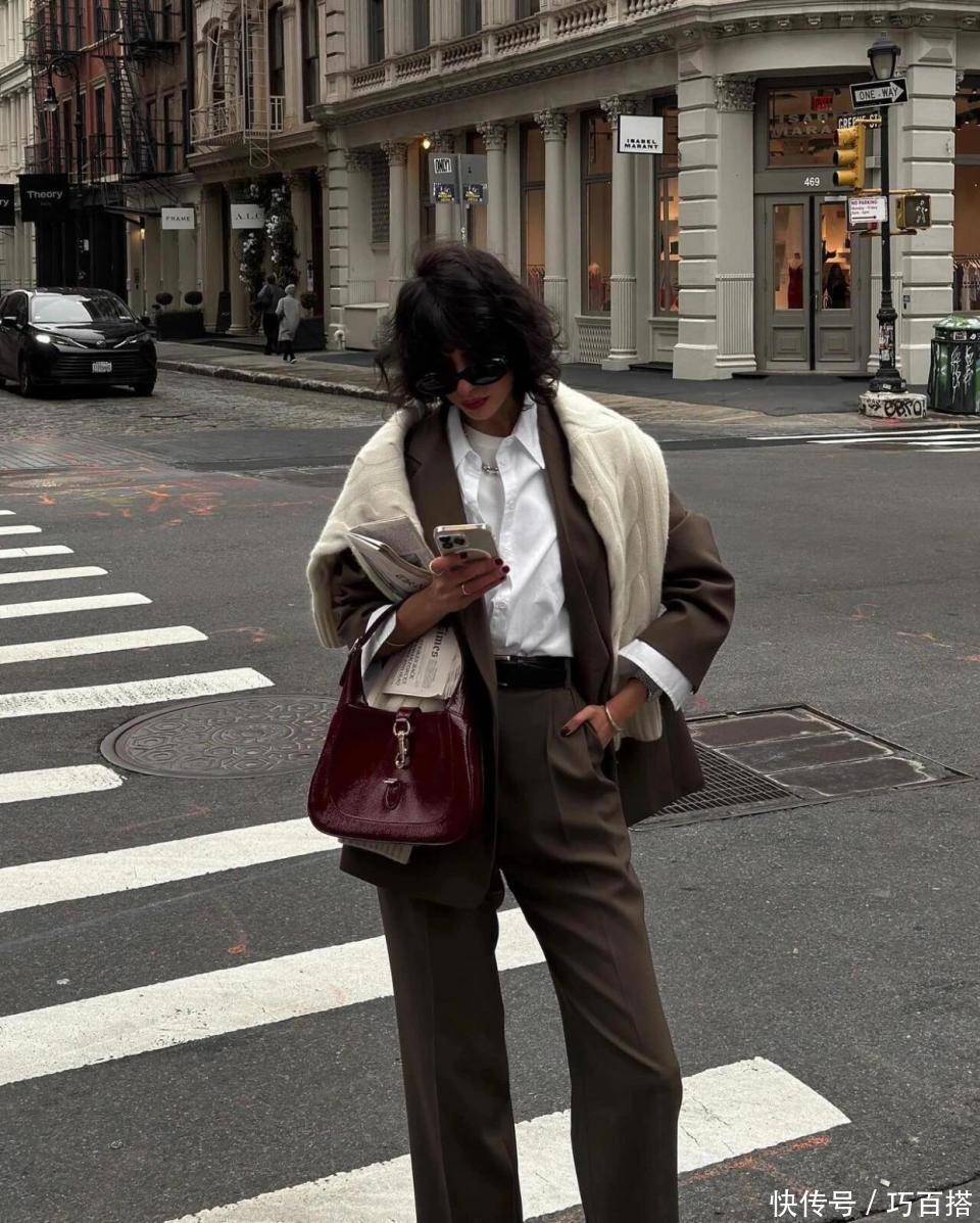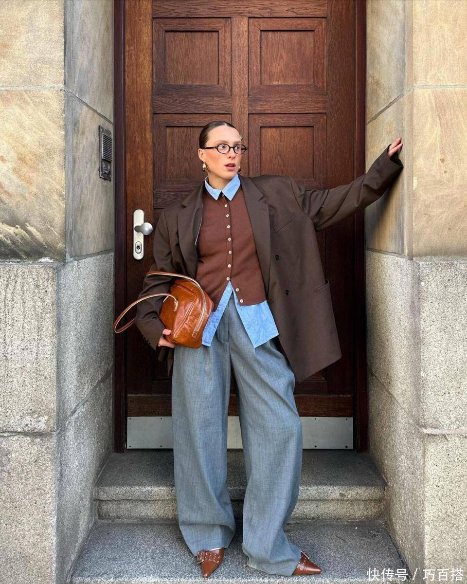 其次,在挑选与衬衫搭配的外衣时,也需要矜重技巧,从博主上身扫尾来看,众人可以计划毛呢西装,中间用赤诚开衫过渡,从简减龄。