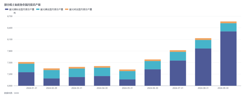 氧化镝产量方面:2024年10月氧化镝产量环比基本捏平。
