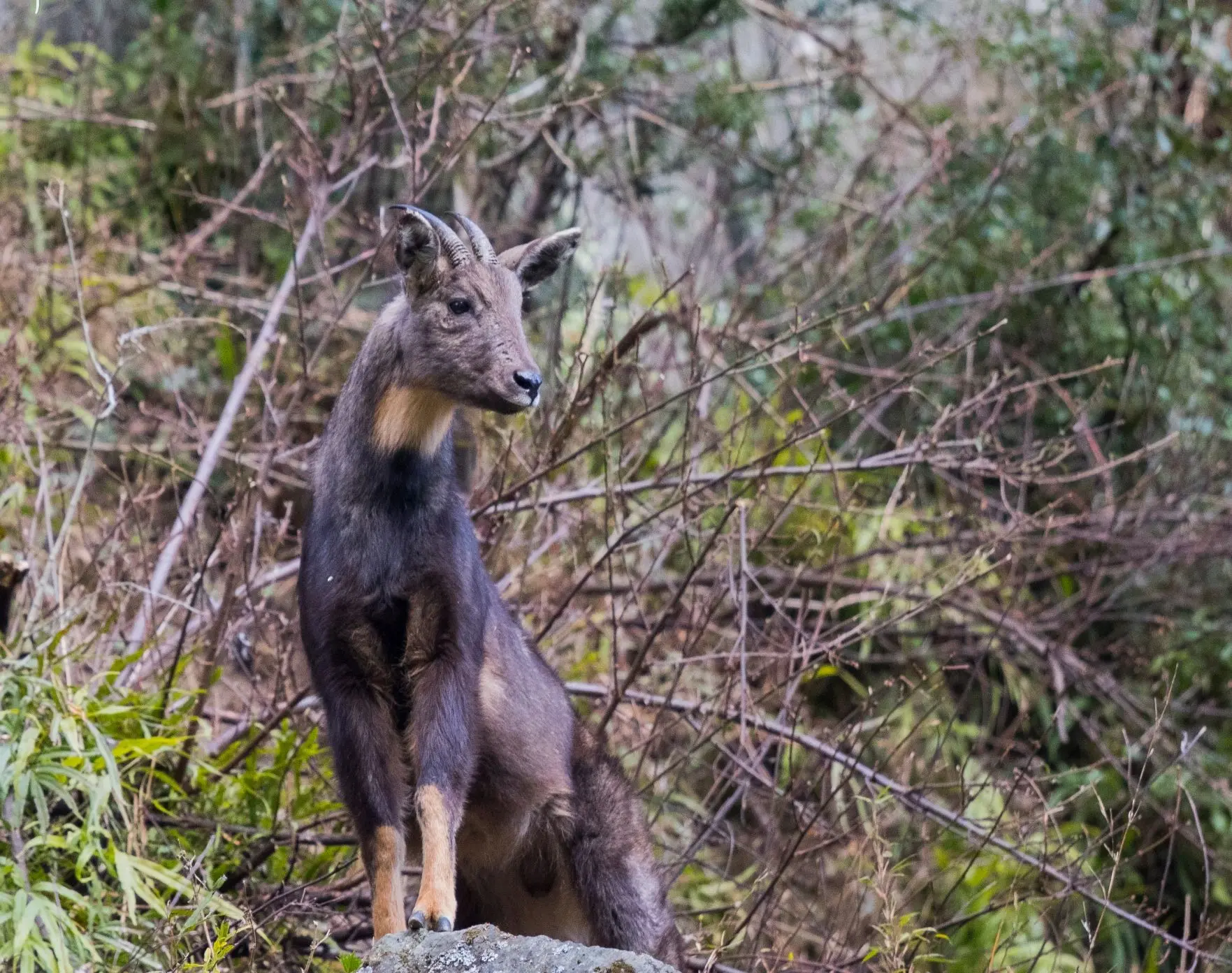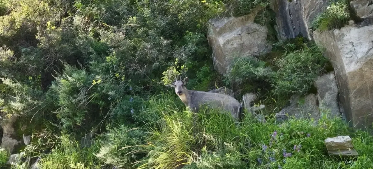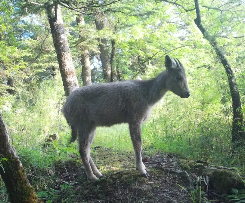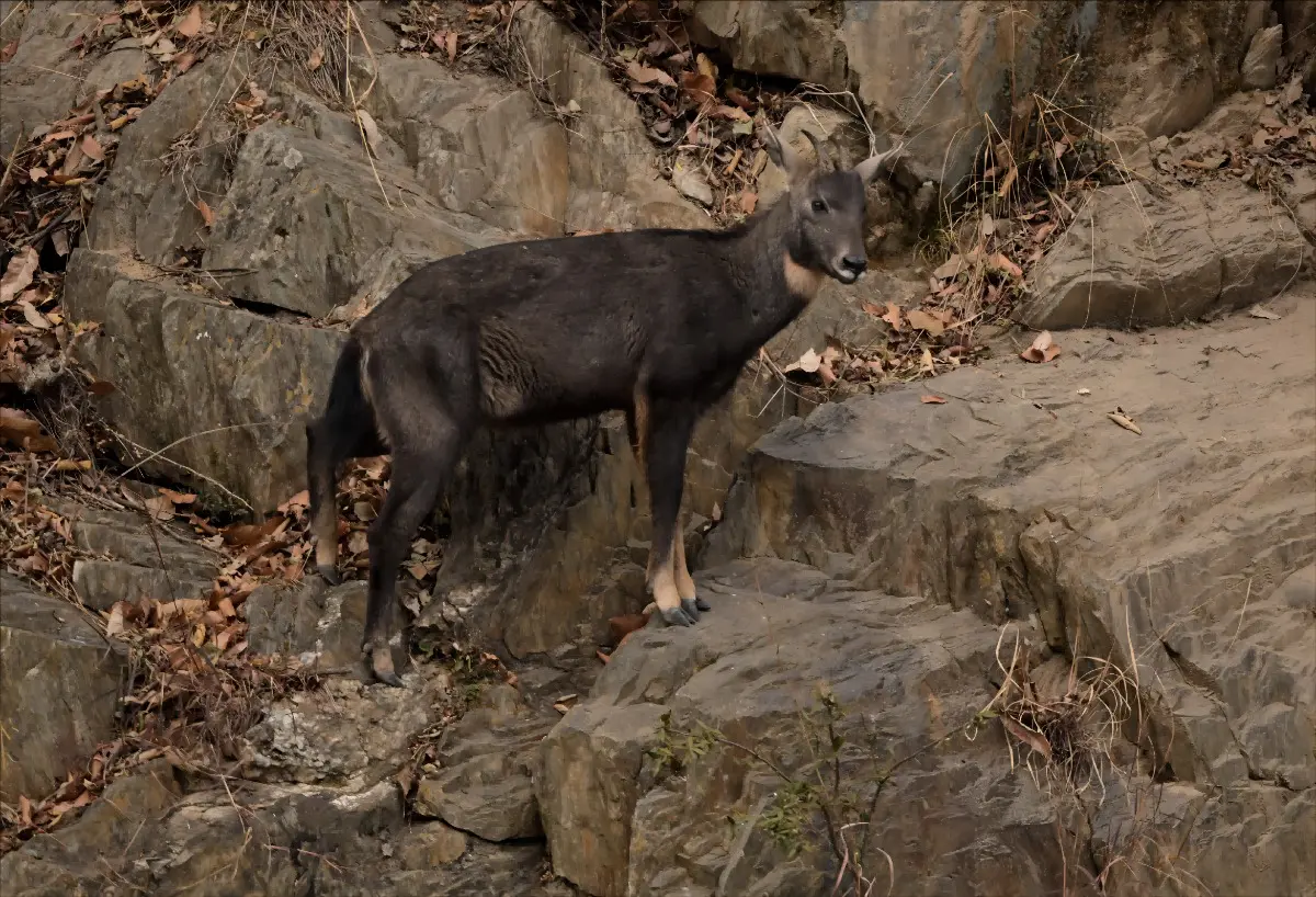 影像而已自大,该中华斑羚具有典型的花样特征:其喉部呈现醒目标白色斑块,与背部深色的条纹变成昭着对比。其身形和会了羊的祥和和鹿的灵动,令东说念主印象深入。矫捷的行动和敏锐的犄角,无不彰显著其超卓的攀岩能力。