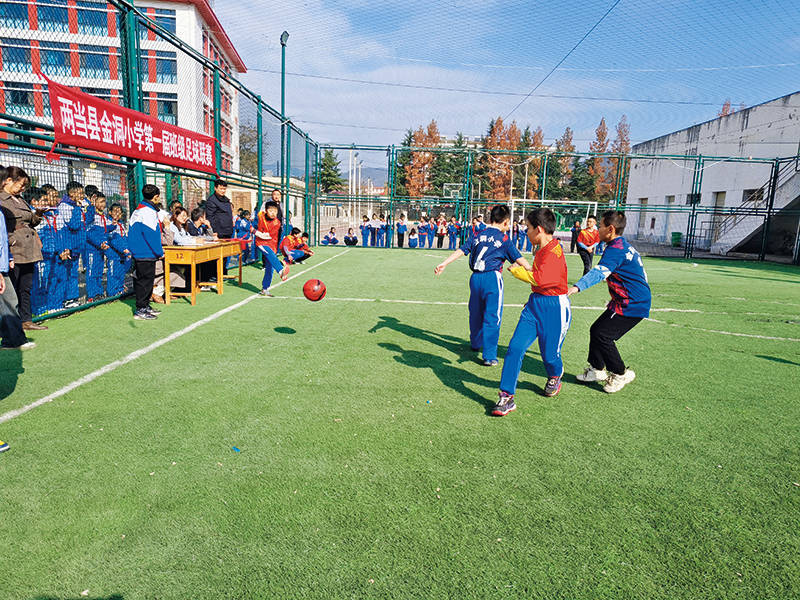 在甘肃省两当县金洞小学的操场上,学生们正在进行班级足球联赛(2023 年 11 月 13 日摄) 受访单元供图搭建家校协同育东说念主柔性桥梁