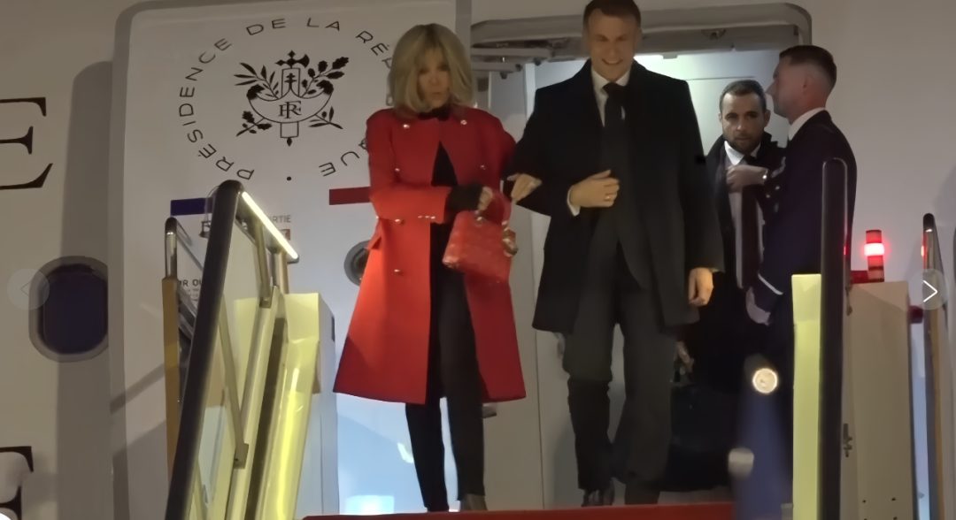 ·12月3日下昼,马克龙抵达北京。(好意思联社视频截图)